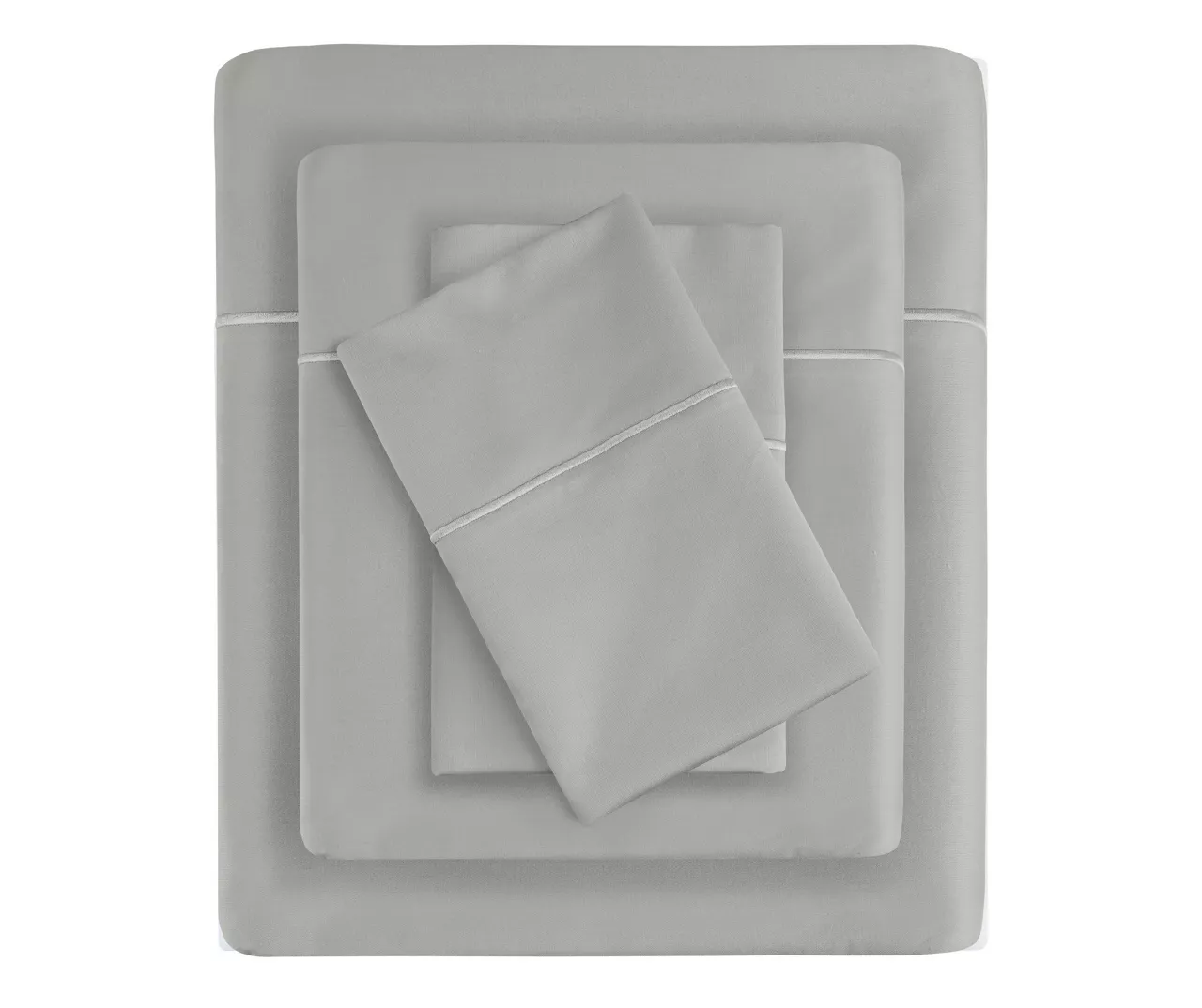 Crafted from hypoallergenic Pima cotton, this sheet set has a gentle sheen and an extra-smooth touch for breathable comfort through the night. Single-line Baratta stitching at the hem adds a luxurious decorative touch, while also adding durability to the seams. It’s a simply elegant way to refresh a master or guest bedroom, and the solid hue easily complements a variety of decor themes.