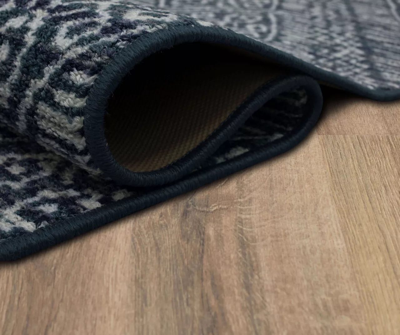 This lovely boho area rug from Mohawk Home features a geometric design in a versatile blue and white color palette that is sure to perfectly accent any room. The low pile is created with Mohawk’s premium wear-dated nylon fiber for a soft touch and dependable durability. This rug is sure to make an elegant addition to a bedroom or other living space and the non-skid latex backing helps to keep things in place.