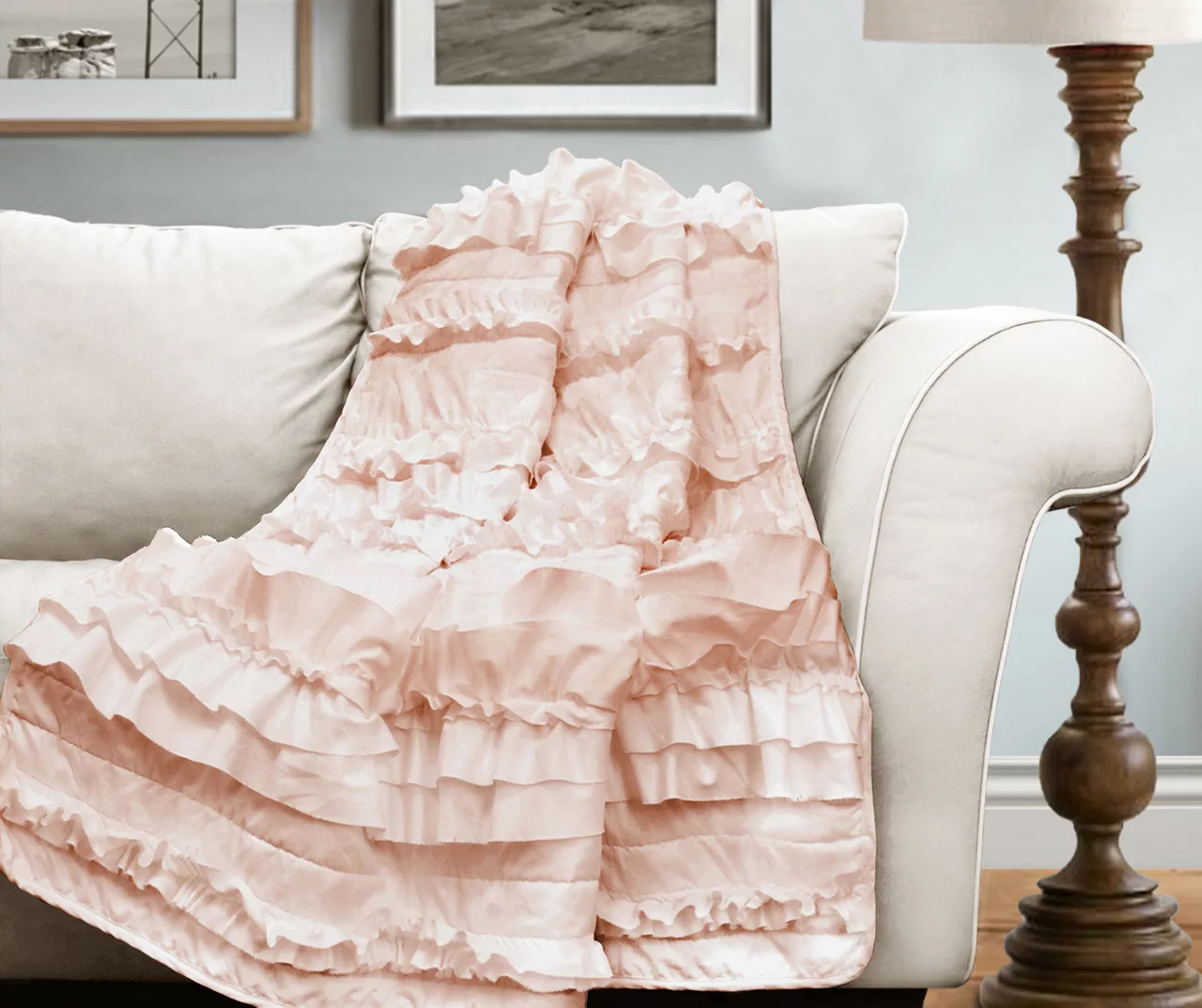 Rows of ruffles deliver ample feminine charm for your living space when you add this cozy throw to your cool-day linens collection.