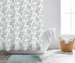 Update your bathroom in one step with this 14-piece bathroom set featuring an elegant botanical shower curtain complemented by a plush and soft faux fur rug. Chrome hooks complete the set and are topped with metal beads so you can easily glide your curtain along the rod.