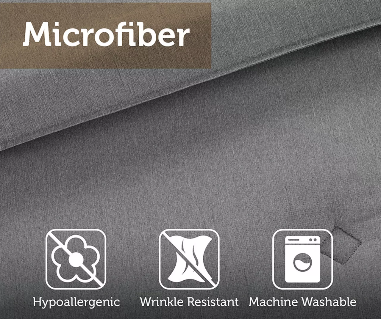 - Material: Soft microfiber face and reverse comforter, printed pieced with quilting, 100% polyester filling; microfiber bed skirt, pillows and