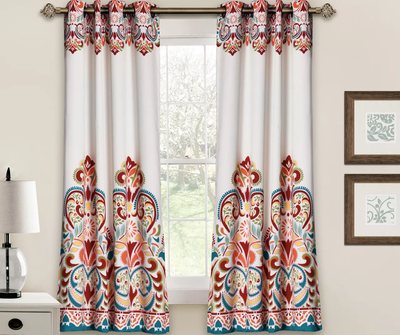 - Room-darkening curtain panels help filter out sunlight and provide privacy