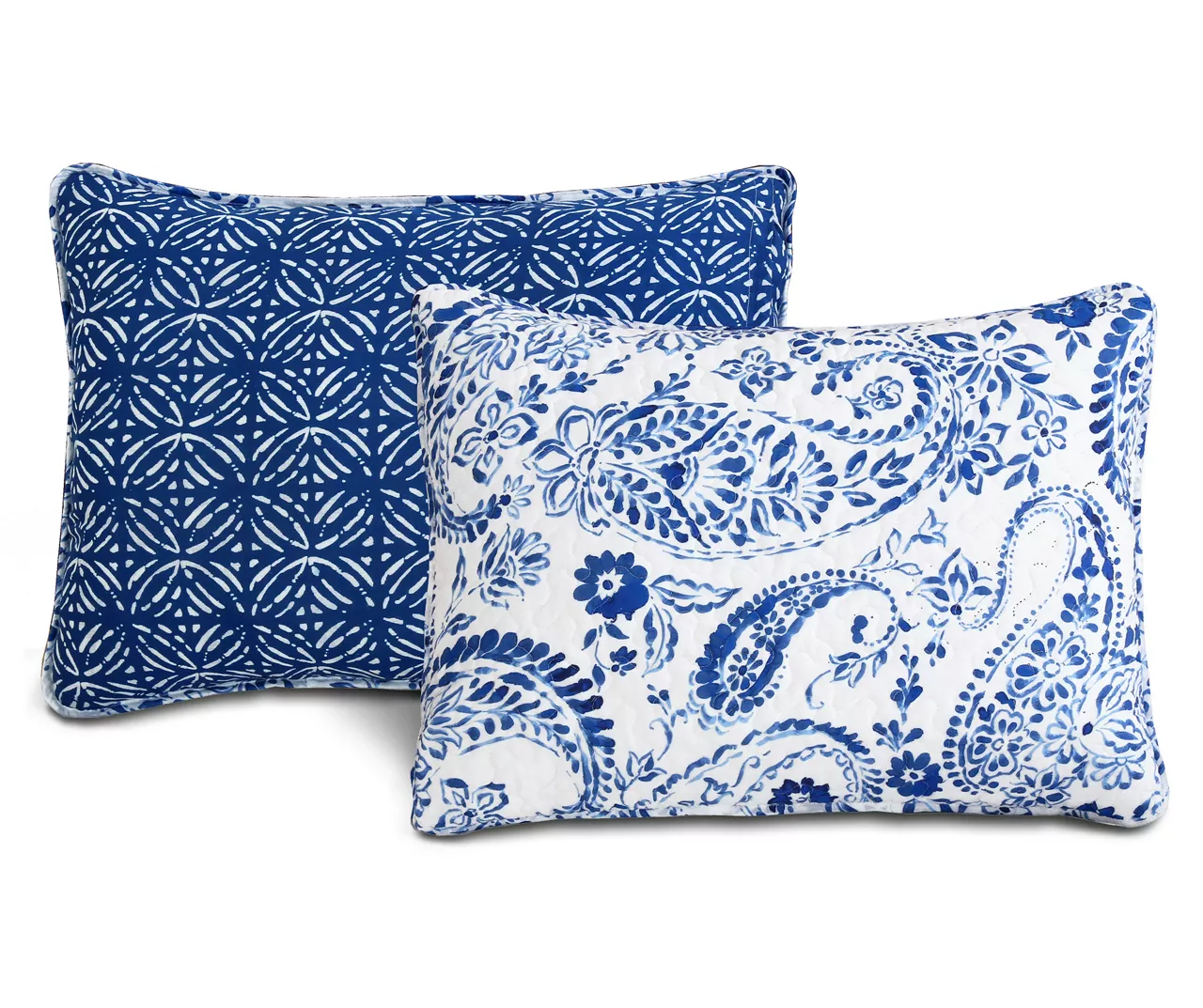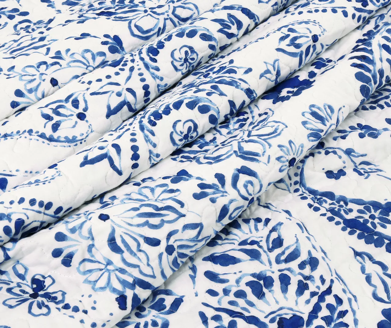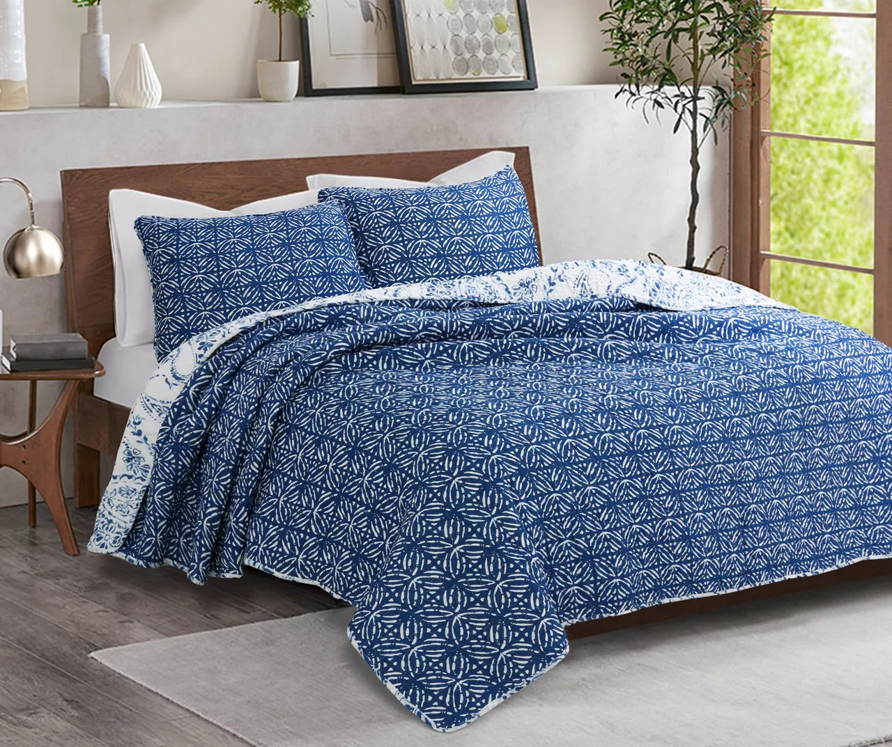 An elegant floral and paisley print in deep blue and crisp white hues brings a touch of garden elegance to your sleep space, while the breathable cotton construction keeps you cozy and comfy through the night. The quilt reverses to a floral grid contrast pattern so you can switch up your bedroom style on a whim.
