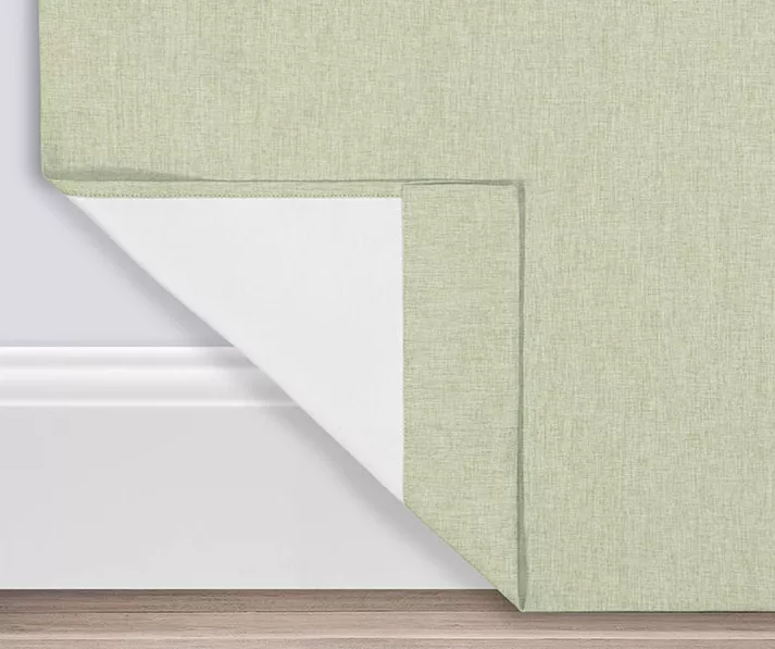 Find the perfect combination of fashion and function with the sage Gabriella window curtain from Eclipse. This beautiful panel offers Absolute Zero 100% blackout benefits and features a textured, tonal solid fabric in light green. It’s perfect for the bedroom, living room, dining room or office. Innovative foam backing is applied to the fabric and allows you to enjoy all of the light-blocking, noise-reducing and energy-saving benefits, while providing the same fashionable style and elegance of naturally flowing curtains.