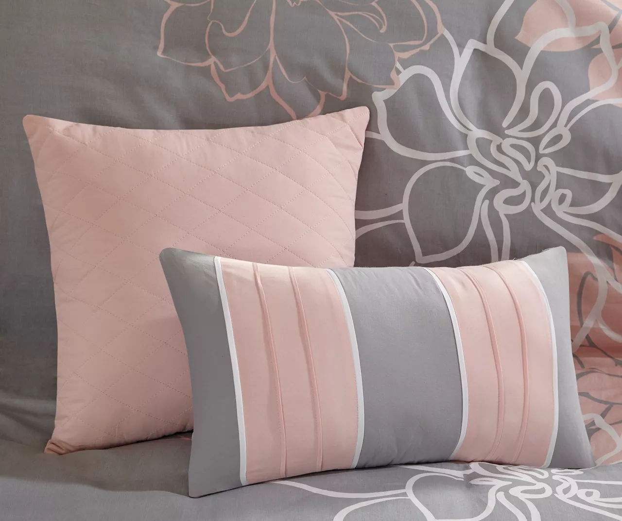- Includes duvet cover, 2 shams, 2 square pillows and 1 oblong decorative pillow