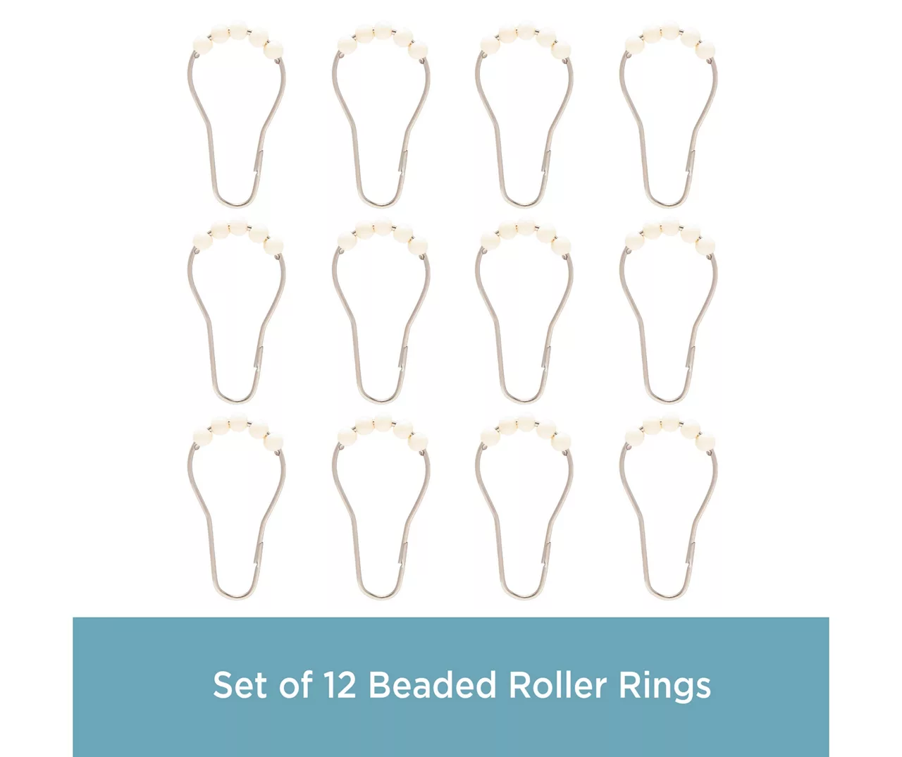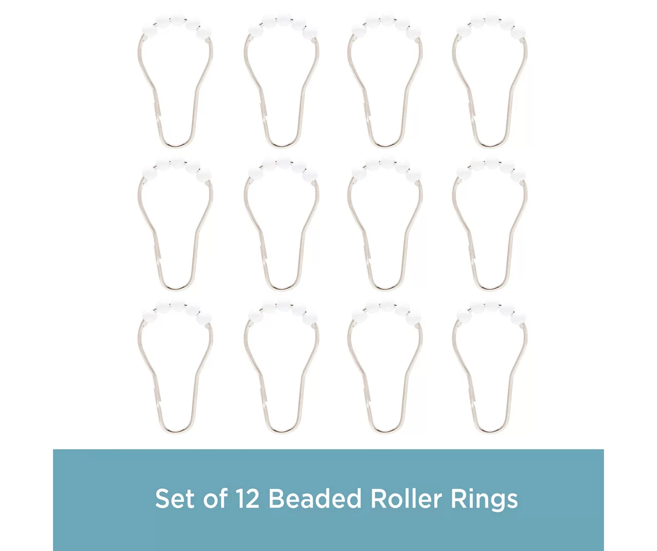 Update the look of your bathroom with this color-coordinated Kenney® liner and roller ring set. The set includes 12 metal shower rings with colored beads that allow the rings to glide effortlessly across your shower rod. Use the matching liner as a stand-alone shower curtain, or layered with a decorative shower curtain. Made of medium-weight PEVA, this liner is PVC-free and odorless. The liner has 12 reinforced holes to prevent tearing.