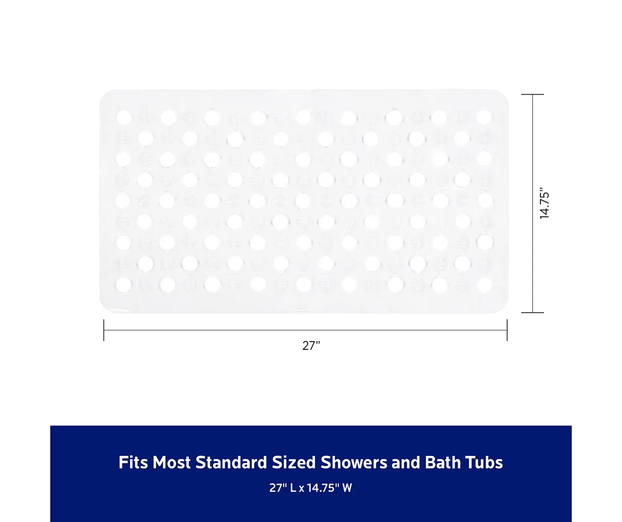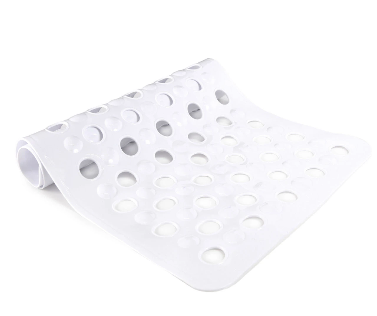 - Large drain holes line the bottom of the mat