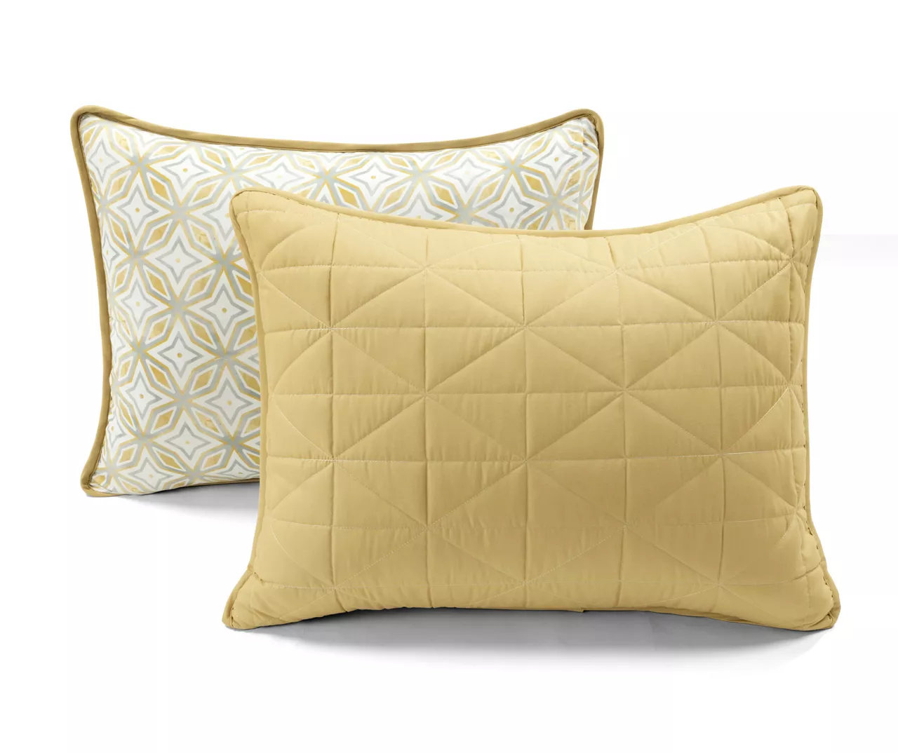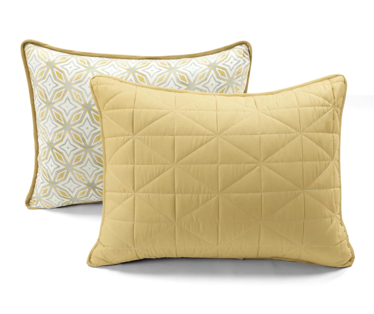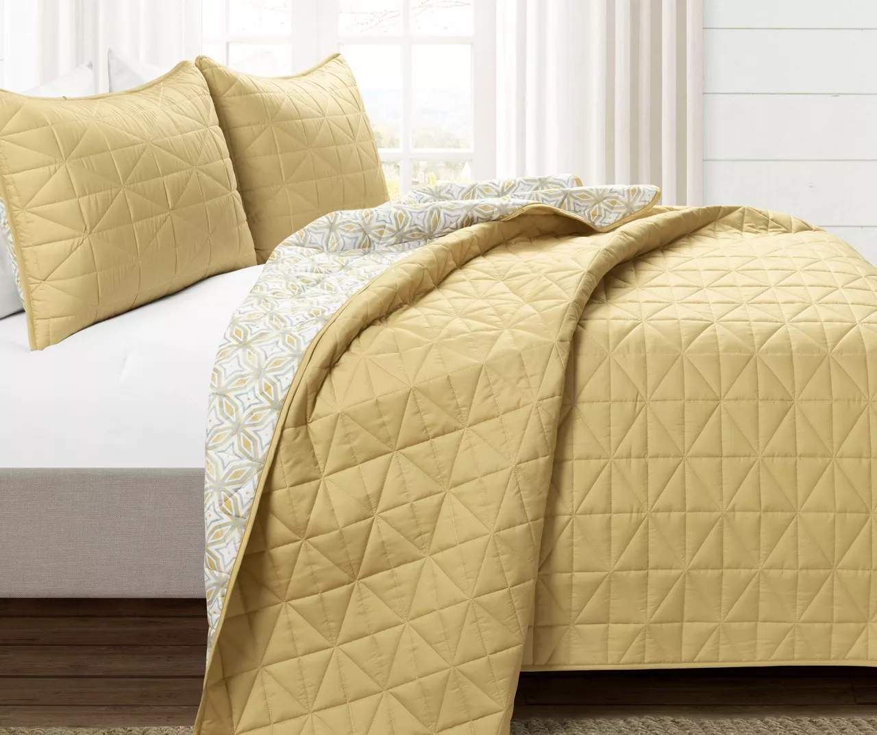 This reversible quilt set from Lush Decor embodies modern mid-century style through its muted colors and printed geometric pattern for a sophisticated look for your bedroom or a guest room.