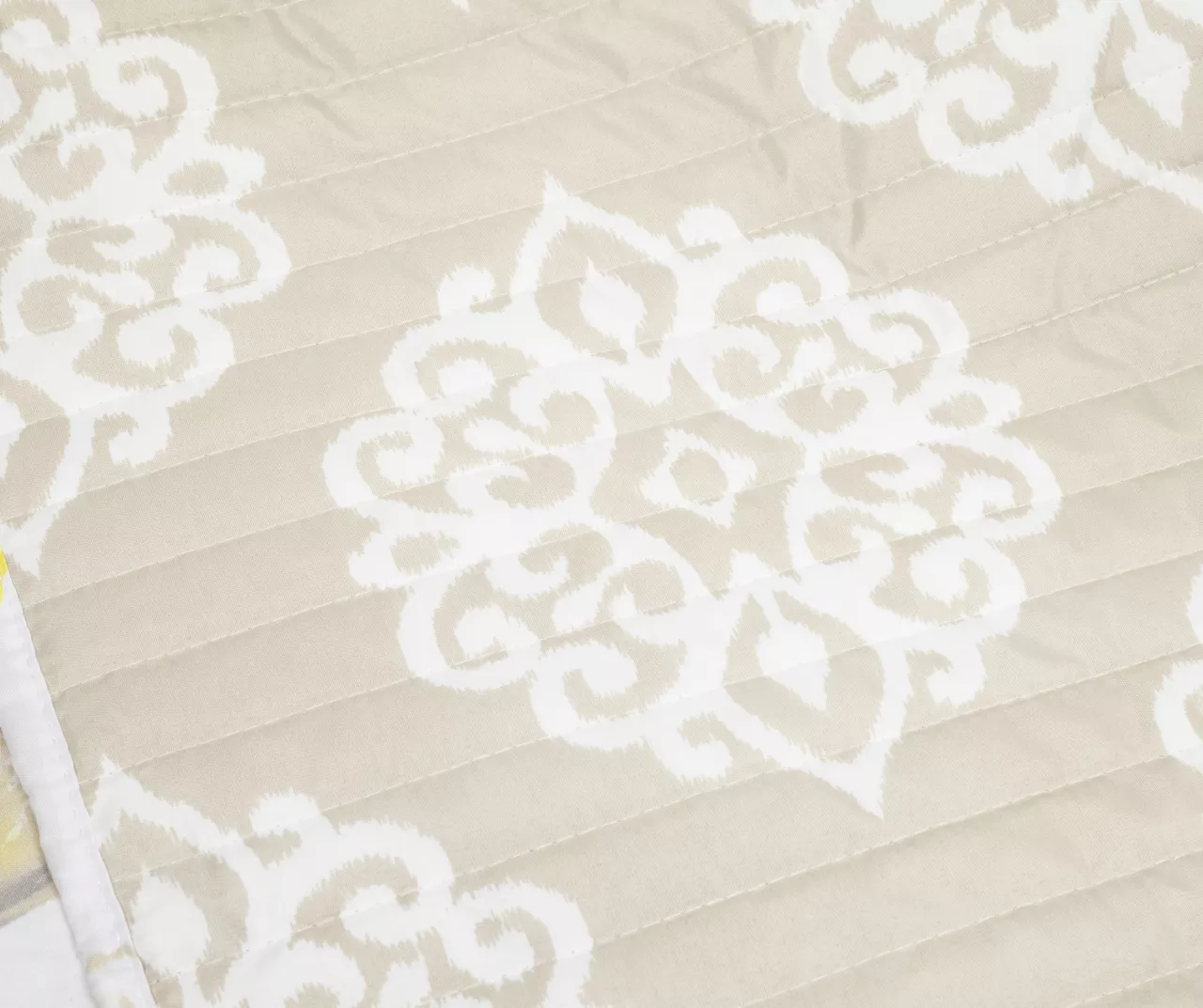 Bring the beauty of a botanical garden into your sleep space with the watercolor-style floral print of this reversible quilt set from Lush Decor featuring a soft damask pattern on the back. Complementary shams and decorative fuzzy and bird motif pillows complete the look with chic, contemporary flair.