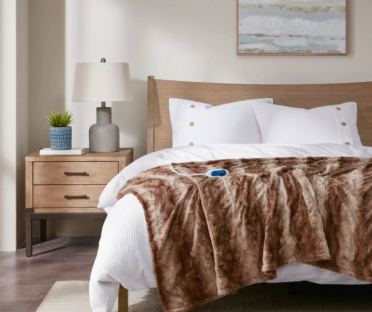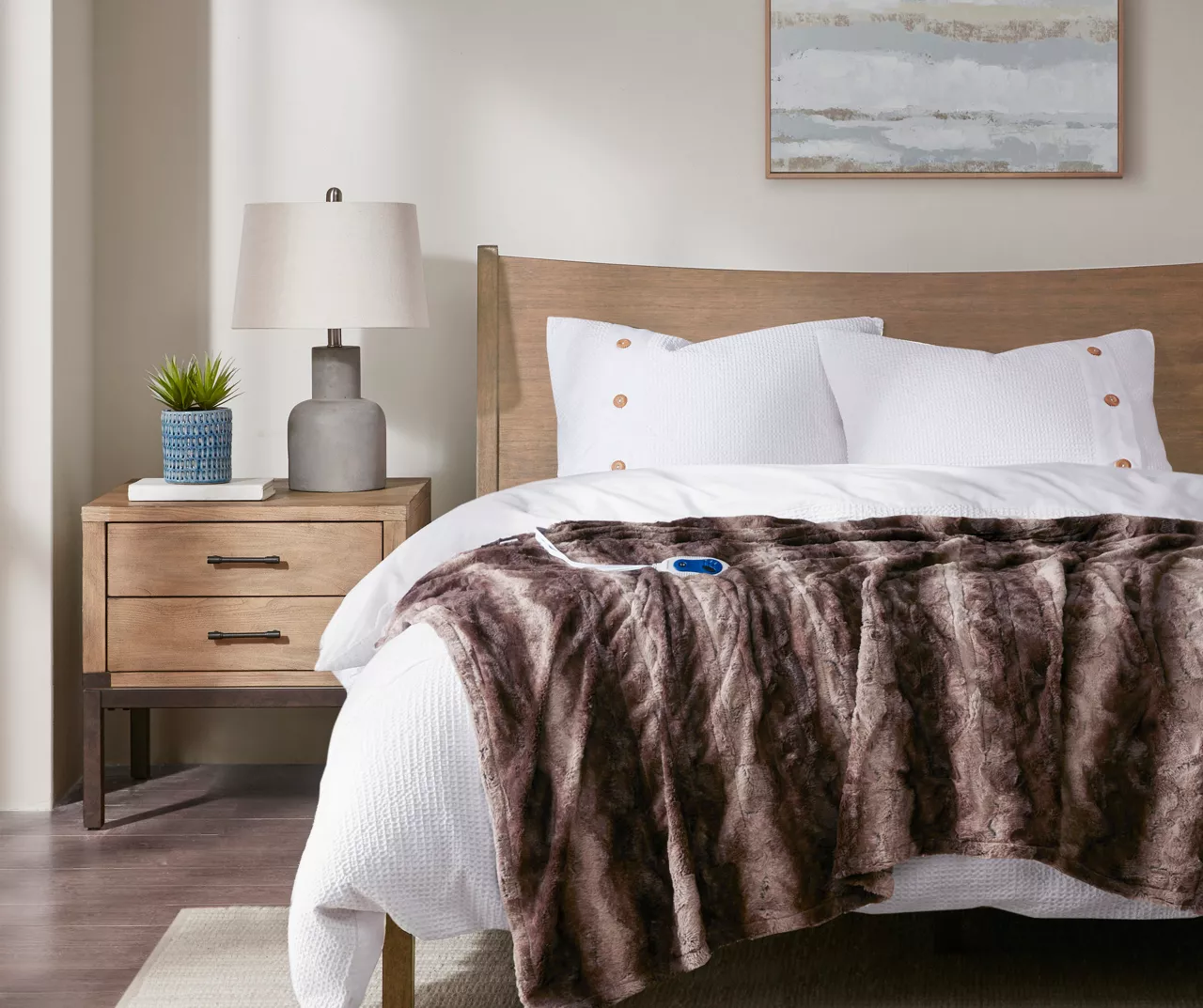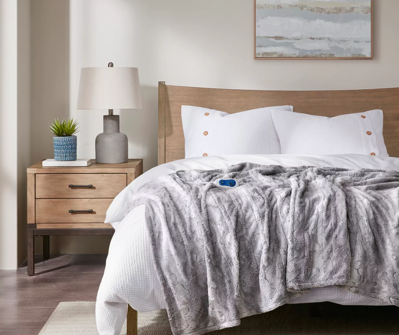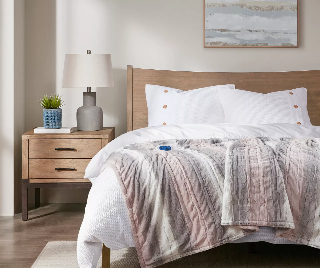 The Marselle heated throw utilizes heating technology that adjusts the temperature of your throw based on overall temperature, spot temperatures and the ambient temperature of your room, ensuring a consistent flow of warmth. This throw flaunts a striped color block design and is oversized for extra coverage. The ultrasoft faux fur fabric creates a cozy, comfortable experience and comes with three heat settings.