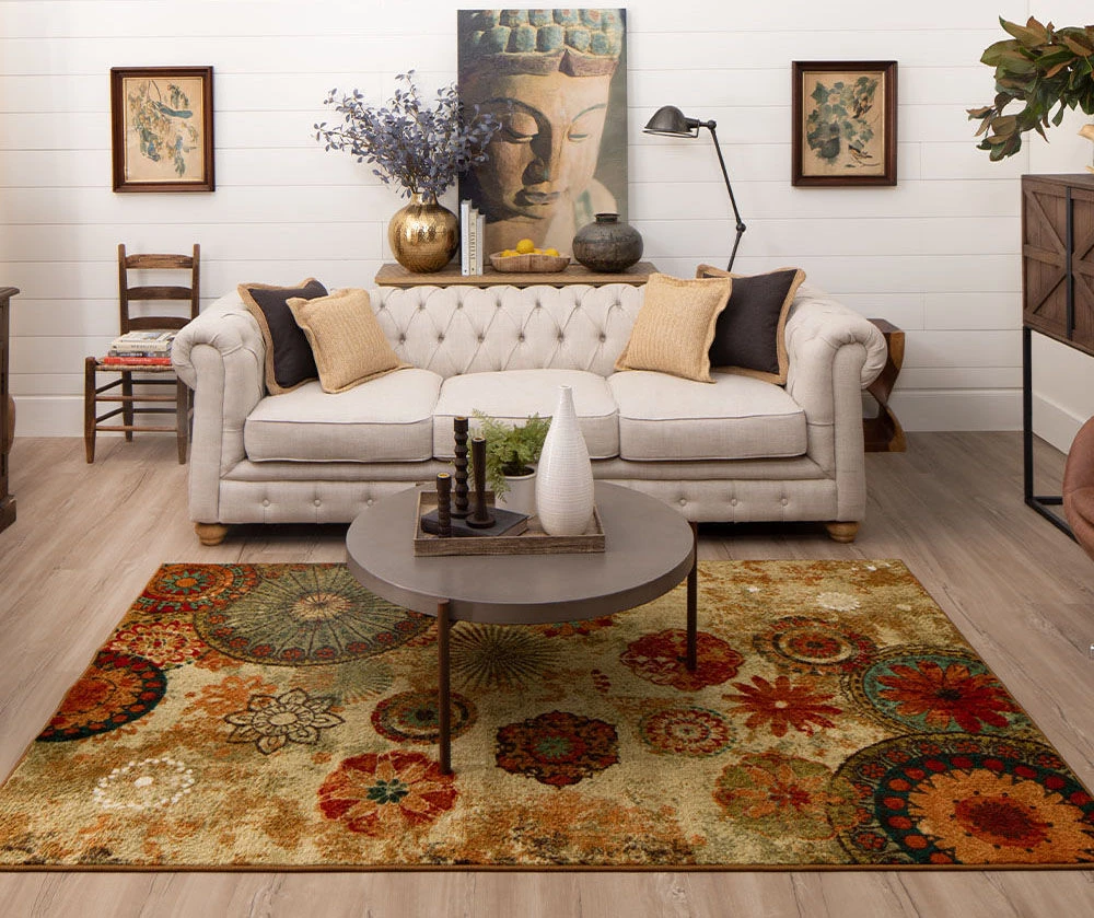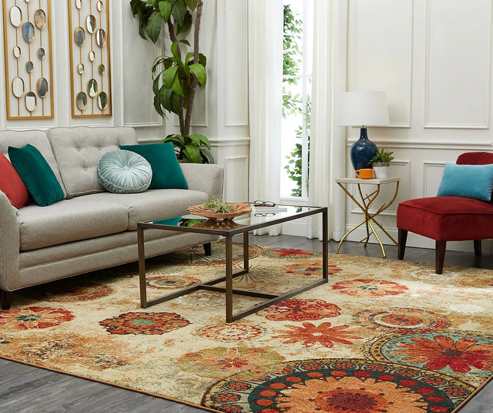 Colorful medallions abound in a bevy of shades and silhouettes on the Caravan Medallion rug. Rich reds, oranges, aqua and cream combine for a show-stopping effect. Featuring a unique pattern and soft comfort underfoot, this rug offers a perfect finishing touch in a living or work area.