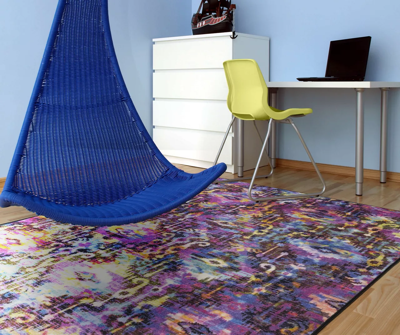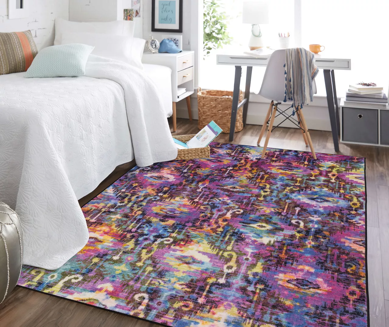Boasting a regal palette, Mohawk’s contemporary Arimo area rug is a bohemian beauty blooming in saturated shades of violet, blue, white, green and yellow. Thoughtfully crafted in the U.S.A. utilizing Mohawk Home’s exclusive precision dye-injected printer, this rug is designed on a plush EverStrandâ„¢ tufted base made from premium recycled polyester. A non-skid latex backing helps to keep things in place, and the low pile is durably designed to easily work with doorways or furniture while withstanding everyday use.