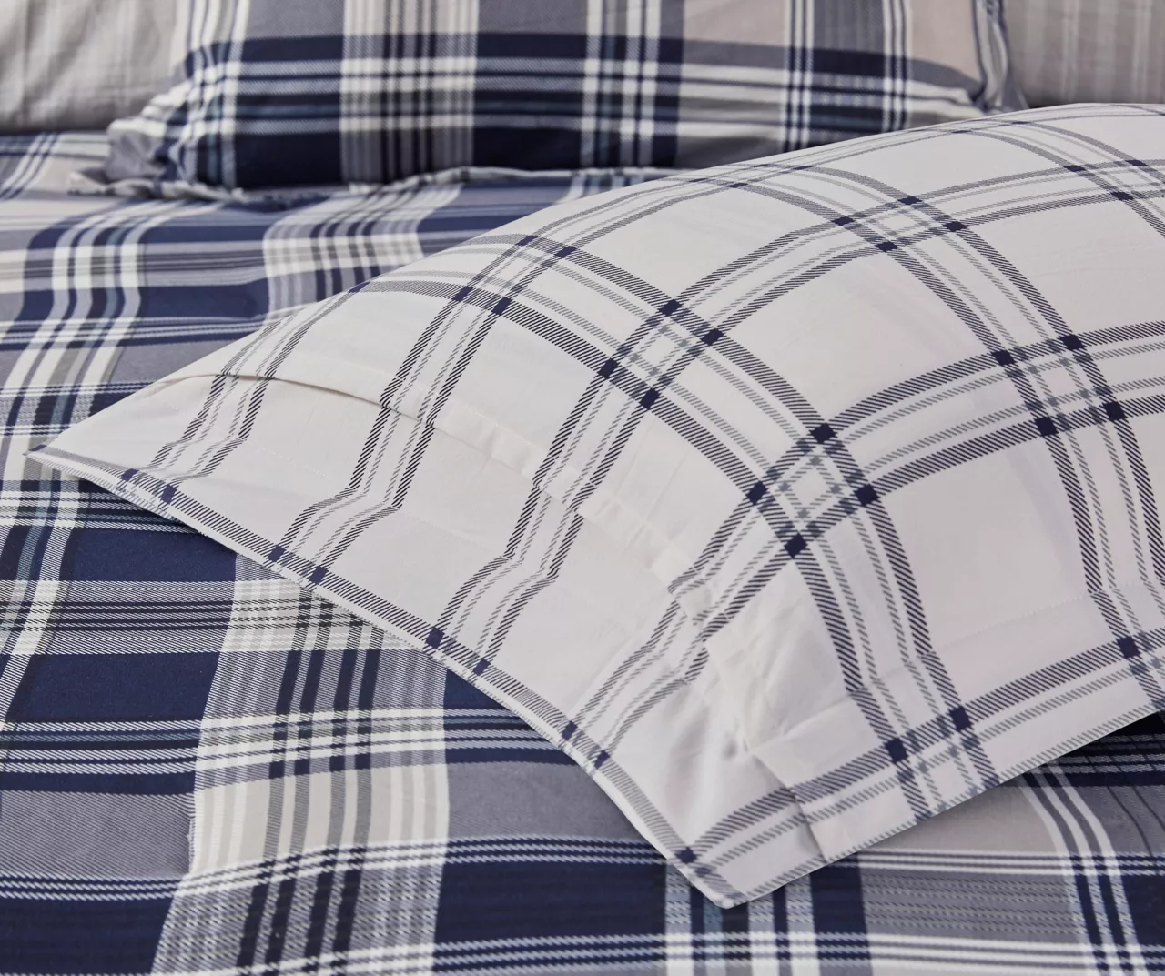 Restyle your bedroom with the Leroy Reversible Complete Bedding Set. The reversible comforter and shams feature a plaid print on the face and a white plaid print on the reverse, for a charming casual look. A coordinating square decorative pillow adds a finishing touch to the comforter. Also included is a sheet set, complete with a flat sheet, fitted sheet, and 2 pillowcases. Bringing the best in health and wellness, this bedding set also features an anti-microbial treatment that provides built-in freshness protection, reducing the growth of odor causing bacteria and keeps fabric lasting longer. This bedding set is also OEKO-TEX certified, meaning it does not contain any harmful substances or chemicals, ensuring quality comfort and wellness.