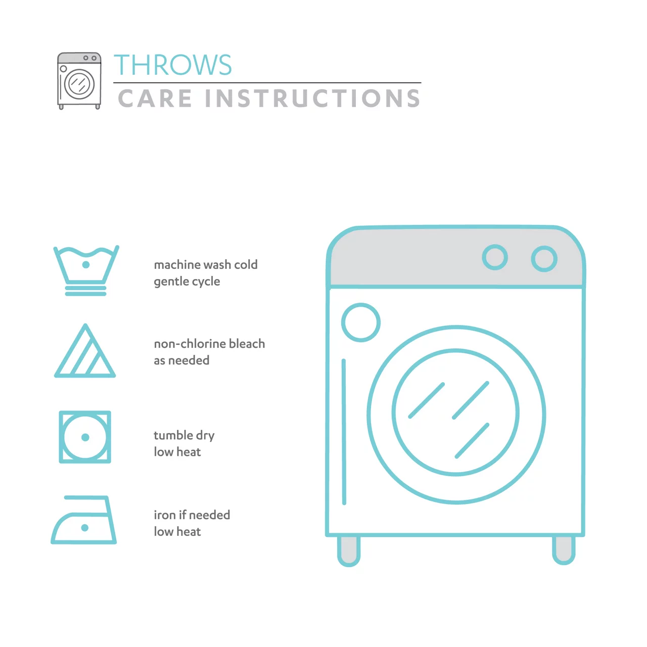 - Machine wash cold on gentle cycle. Use non-chlorine bleach when needed