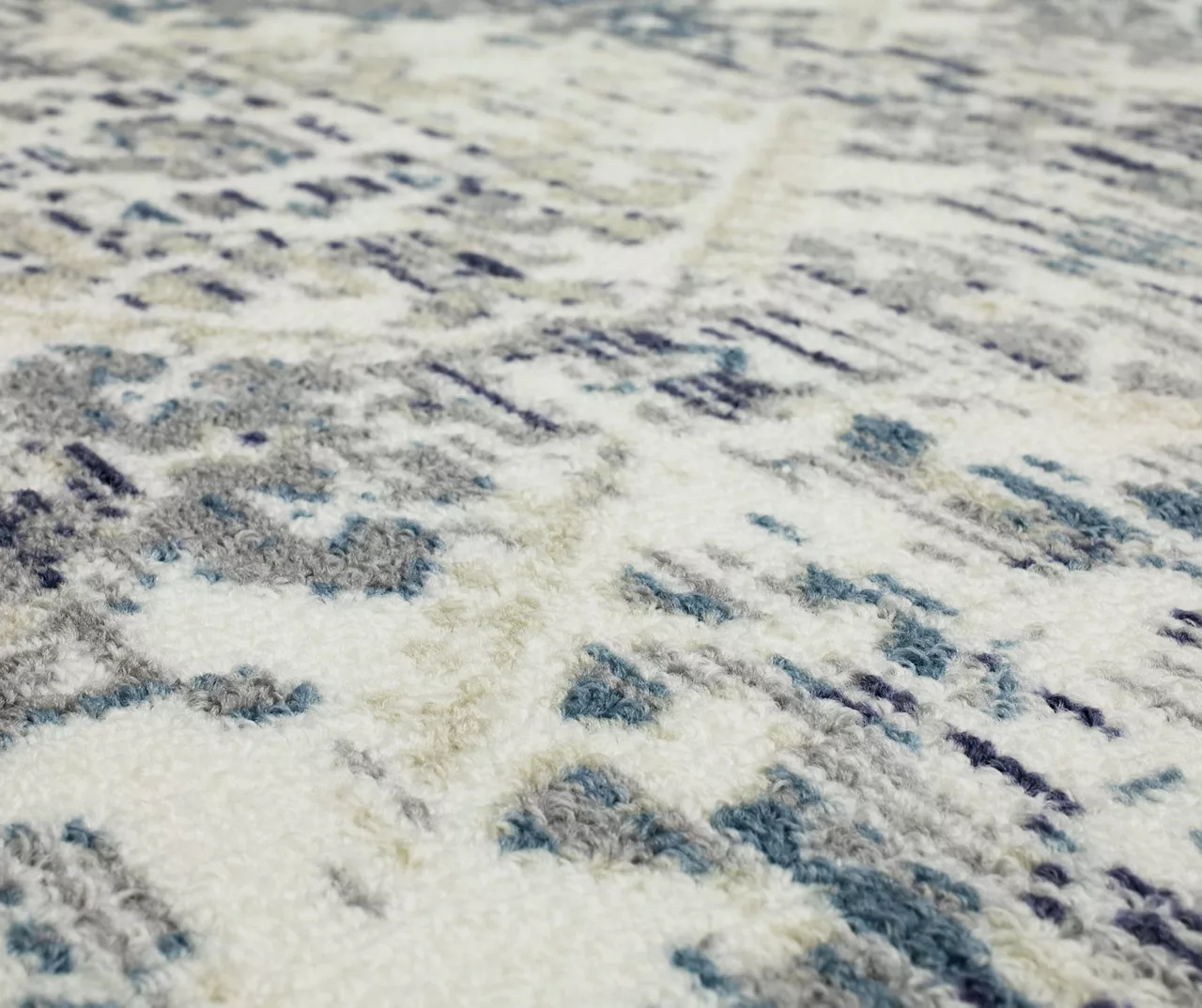 - Geometric ornamental design in a cool white and blue palette for a versatile boho look