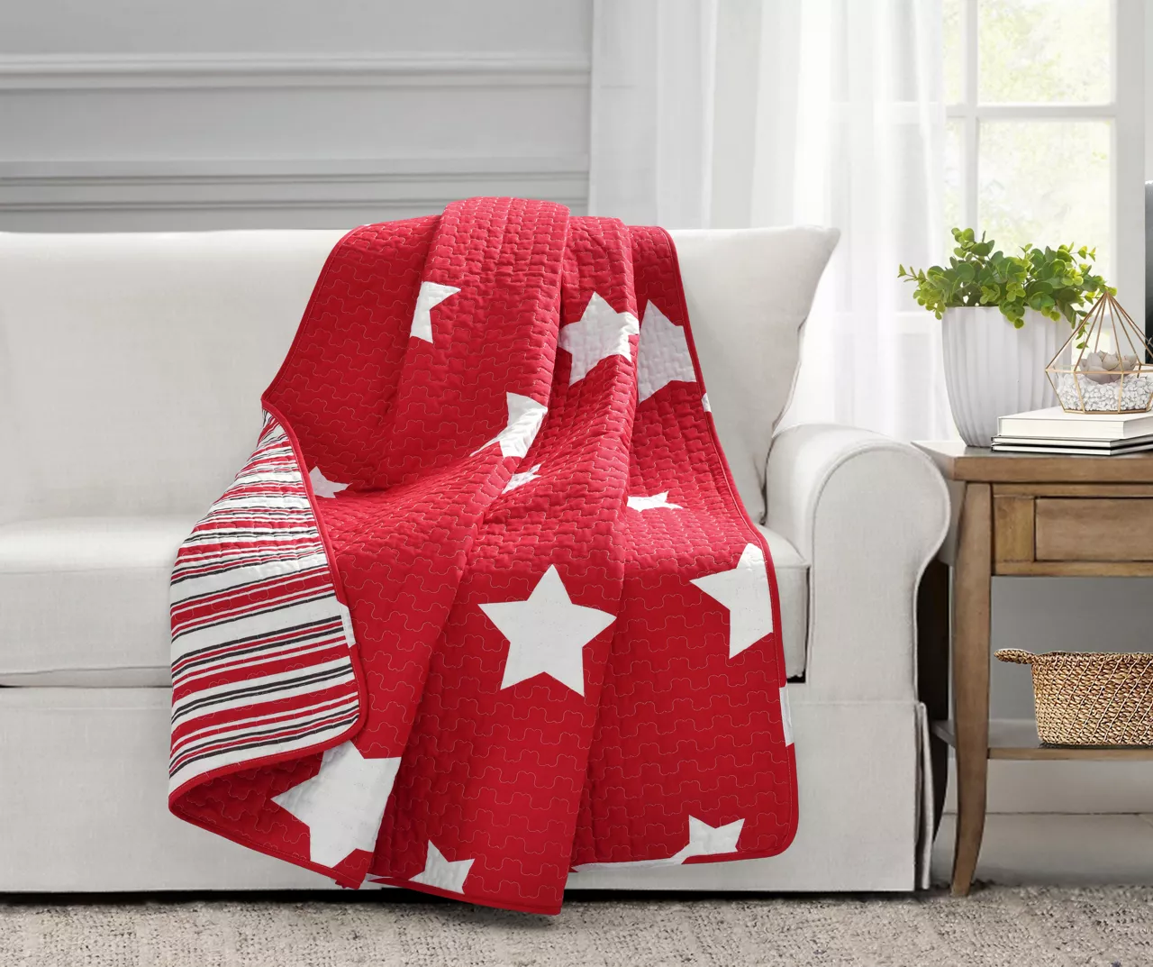 Bold stars decorate this throw with celestial style for a look that’s out of this world, and a modern striped contrast adorns the reverse side. Crafted from cozy and breathable cotton fabric, this throw is the perfect way to instantly brighten a bedroom or living space.