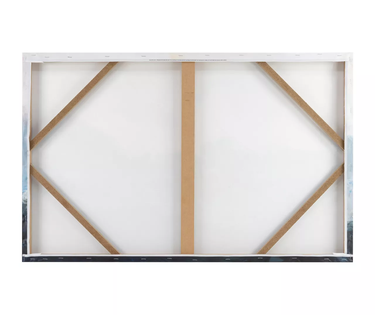 A painted abstract design is shaped by gentle strokes in rich shades of blue, white and gold on gallery-wrapped canvas for a creative and contemporary note in your home. Gouache-style texturing adds a dimensional visual element that makes this pretty pick pop wherever you choose to place it.