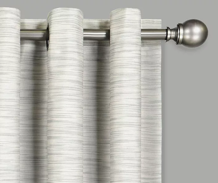 Find the perfect combination of fashion and function with the platinum Warren window curtain from Eclipse. This beautiful panel offers Absolute Zero 100% blackout benefits with a premium thermal lining that gives a rich handfeel and provides luxurious drapability. It features a woven textured fabric in off-white that makes it perfect for the bedroom, living room, or any room in your home and allows you to enjoy all of the light-blocking, noise-reducing and energy-saving benefits.