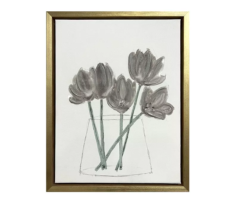 Blending painted floral arrangements with a sleek, modern gold frame, this canvas is sure to elevate your walls with contemporary botanical beauty that easily complements most décor styles thanks to its muted hues and simple lines.