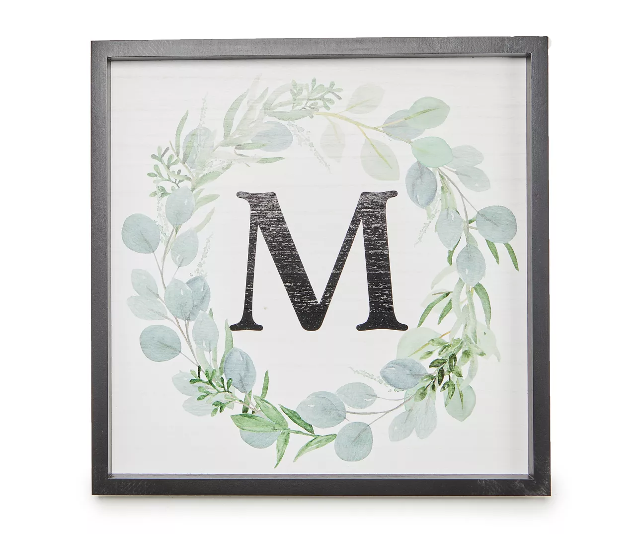 Give your walls a personalized flourish with the lovely botanical style and bold initial design of this round plaque. The black wood frame is fitted with sawtooth hardware on the back for quick and easy installation.